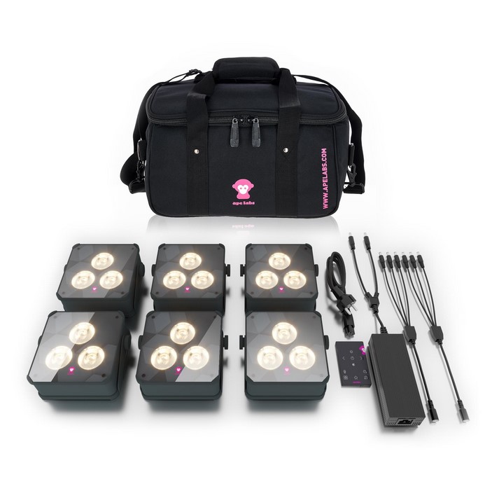 Set mit 6 ApeLight Maxi V2, Fernbedienung und Transporttasche